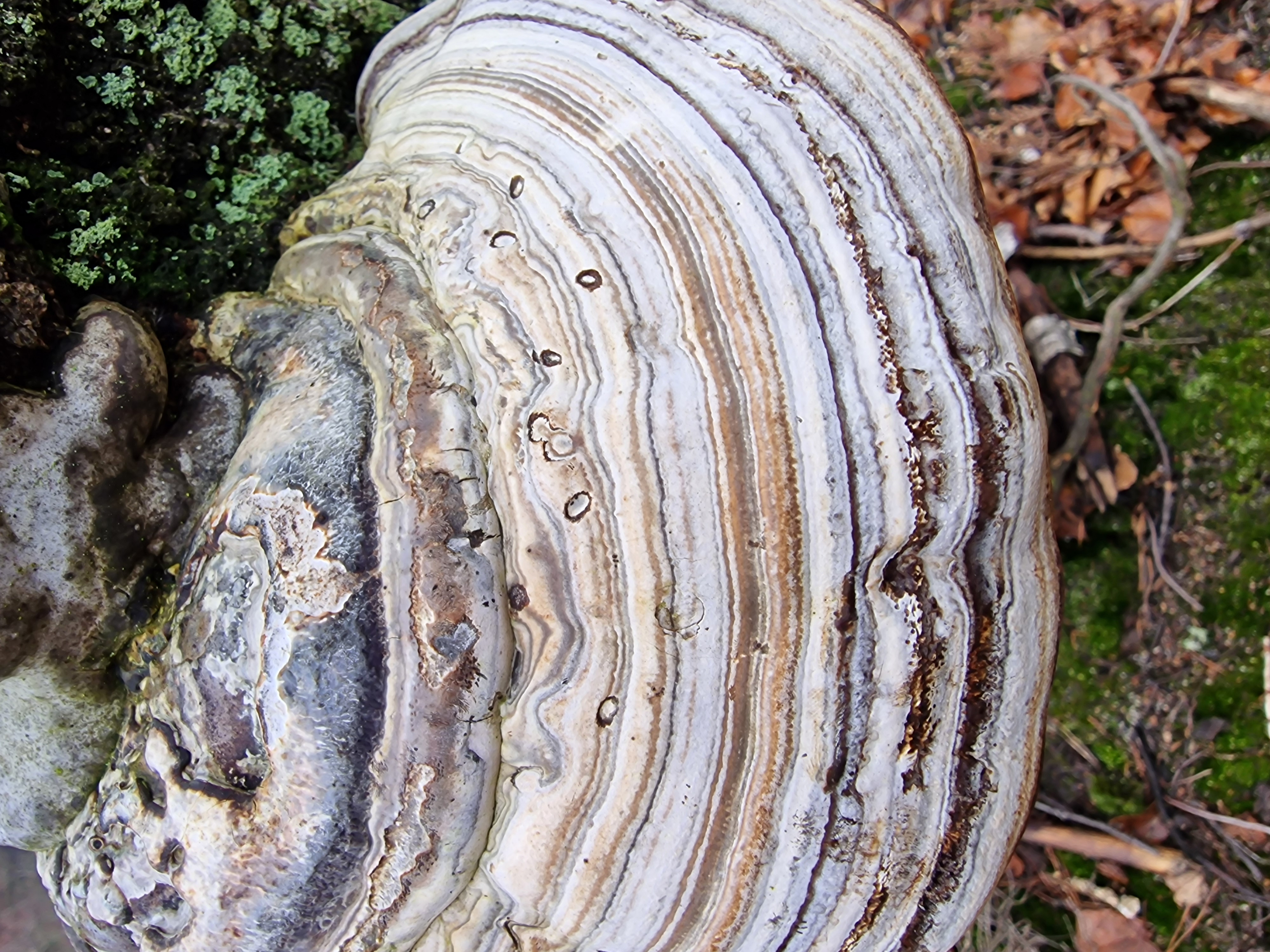 Farblich sehr variabel! Jung: Fruchtkörper und frische Zonen sind meist weiß bis ockerfarben oder rotbraun